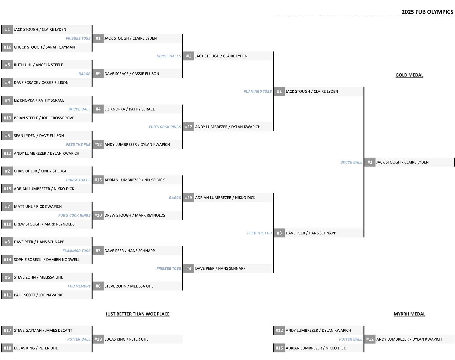 | 16 | CHUCK STOUGH | SARAH GAYMEN | 3 | 6 | 0 | 9 | 155 |